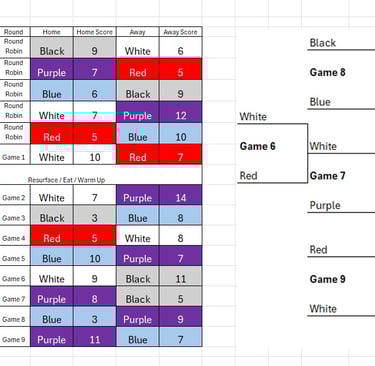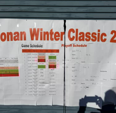 This year, we only had 8 total days that the weather was cold enough for the rink to be skateable. Fortunately, a cold snap came through, allowing us to have the tournament, but the weather turned completely prior to the tournament. The rink was unskateable 24 hours prior to the tournament and the temperature dropped below zero, causing us to cancel the junior division. The senior division played, and while the tournament was hosted on Youtube for the first time (https://www.youtube.com/watch?v=RZ9RH7L_M3o) the weather was so cold, the camera froze up for much of it.