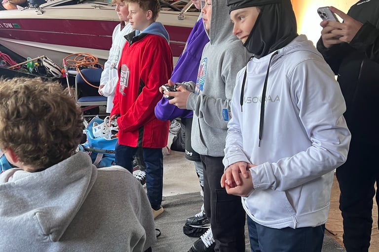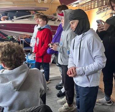 The senior division was intended to have 18 players but after a massive amount of last-second cancellations, we ended up playing with 10 players. Though the weather was cold (around 5 degrees), the kids played their games and then went into the garage that was around 50-60 degrees to play NHL 25 and eat food catered in by Fat Jack's BBQ.
